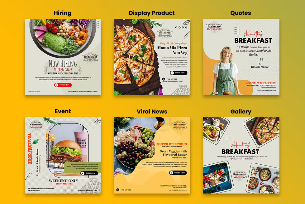 Engaging social media designs for food brands that combine appetizing visuals, creative layouts, and clear messaging to attract audiences and drive interaction. Each design is crafted to highlight flavor, freshness, and brand identity while maintaining consistency across platforms, ensuring your content stands out in a competitive digital space.